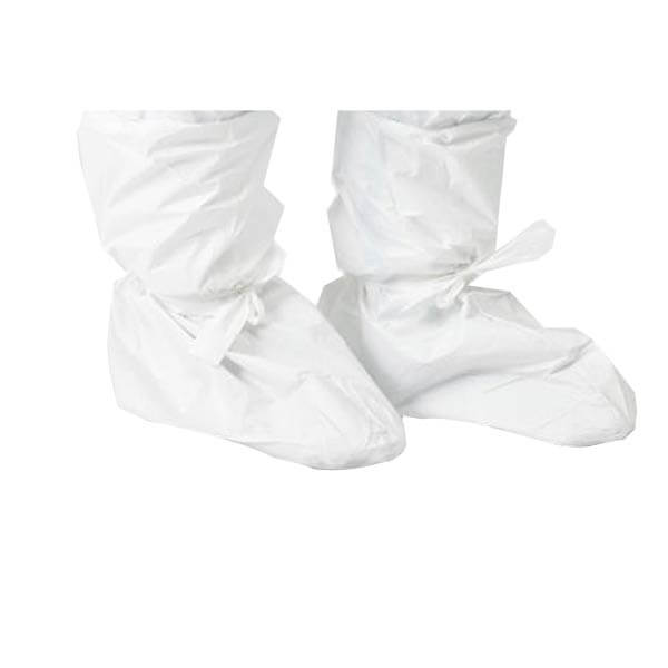 Dupont Tyvek 18" Disposable Skid Resistant Boot Covers is convenient slip-on protection. TyvekŪ fabric is very strong, but is nearly impossible for the average person to tear, but can easily be cut with scissors or other sharp objects. These Skid Resistant 18" high boot covers provide extra room and protection over low-rise shoe covers. |