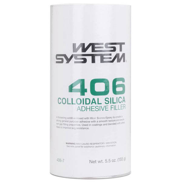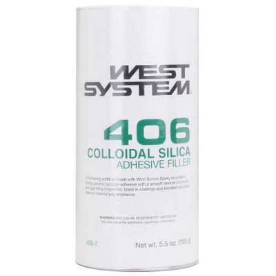 406 Colloidal Silica is a thickening additive used to control the viscosity of West System Epoxy and prevent epoxy runoff in vertical and overhead joints. 406 is a very strong filler that creates a smooth mixture, ideal for general bonding and filleting. It is also the most versatile filler.