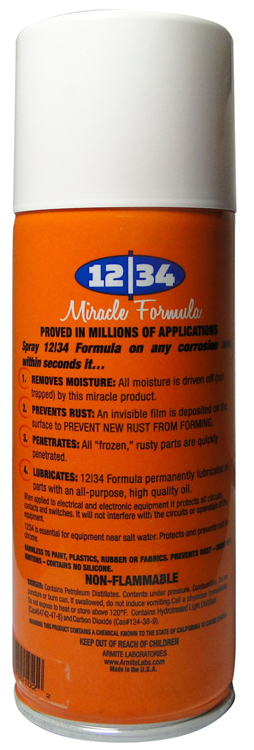 Meets MIL Spec MIL-C-23411 12/34 MIRACLE FORMULA® has the most effective ALL-IN-ONE formulation on the market today. Its lubricating, moisture displacing, penetrating and corrosion prevention is unsurpassed in any single product type of its kind. Don't accept substitutes, ask for 12/34 MIRACLE FORMULA® by name.
