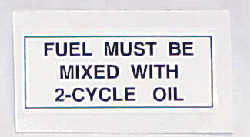Oil Mix Placard - Placed near fueling port as reminder to mix oil. Black on white vinyl. Measures: ¾ x 1 ½ |
