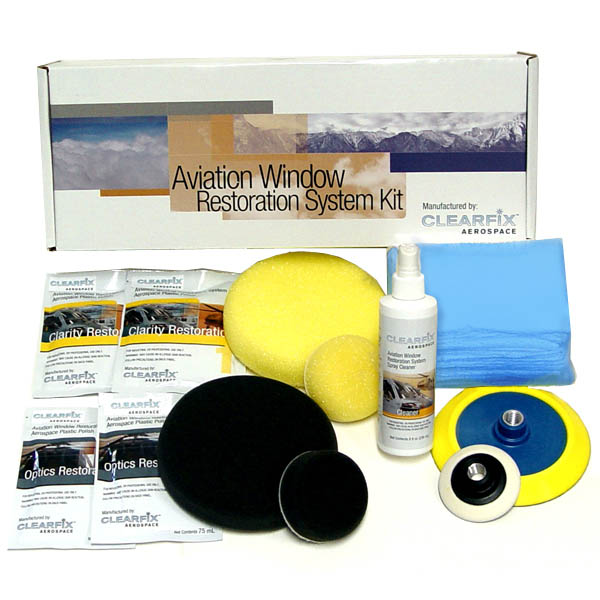 Note: Step 3 is not included in this kit and not recommended. Removes scratches, hazing and other imperfections from acrylic and polycarbonate aircraft windows. Restores clarity and keeps windows looking "factory-new!" The Aviation Window Restoration System by Clearfix™ Aerospace is an easy to use, two-step process designed specifically for use on acrylic and polycarbonate aircraft windows. The two steps restore clarity and optical properties by removing scratches, hazing and other imperfections incurred in normal use, degradation due to suncaused oxidation, and scratching from sand and salt crystals. Just prep, apply and fly! With this easy-to-use system, your windows can be restored to like-new condition without the hassle of removing them. And it's fast – 60 minutes after application, you're ready to fly! |