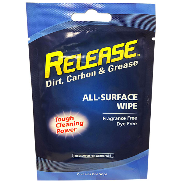 Reach for Release® wipes - each wipe is saturated with Release, the most effective aircraft cleaner, and degreaser, and is safe to use on all aviation surfaces due to its advanced associative technology. No more spot testing, it won’t hurt the surface, period. Release® is a ready-to-use non-solvent base product that is formulated for rapid penetration and removal of dirt, grease, grime, oil, exhaust soot, and organic soils. It works by emulsifying the soil and releasing it from the surface, not attacking it. Release® can be used on interiors and exteriors and is fragrance-free, meaning there is no chemical smell.