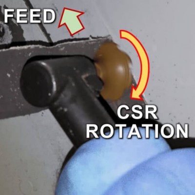 CSR is made from durable Torlon® material that can remove sealant in many applications at a lower product cost with greater efficiency and productivity. For aerospace applications, CSR is safe to use on common protective coatings and structural materials. CSR series can be used with 1/4”-28 UNF, 1/4” collet, and drill chuck interfaces. Screw in or attach/lock into rotary tool. CSR cuts by rotating in the clockwise direction. Operate the CSR at 200-400 RPM for better controllability while avoiding heat buildup. Heat will accelerate wear on the CSR and may generate undesirable odor from the sealant. For general applications, use the CSR-10 to engage an edge of the sealant and allow the rotating action to cut through at the bond line. |