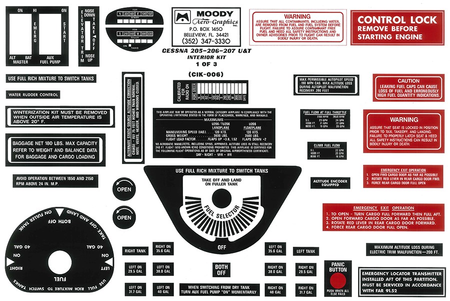 These quality decal sets are designed to provide all the necessary placards for the interior of various production and homebuilt aircraft. These interior kits are color coordinated to match factory originals. Just cut the decals you want to use from the card and apply to the aircraft interior.