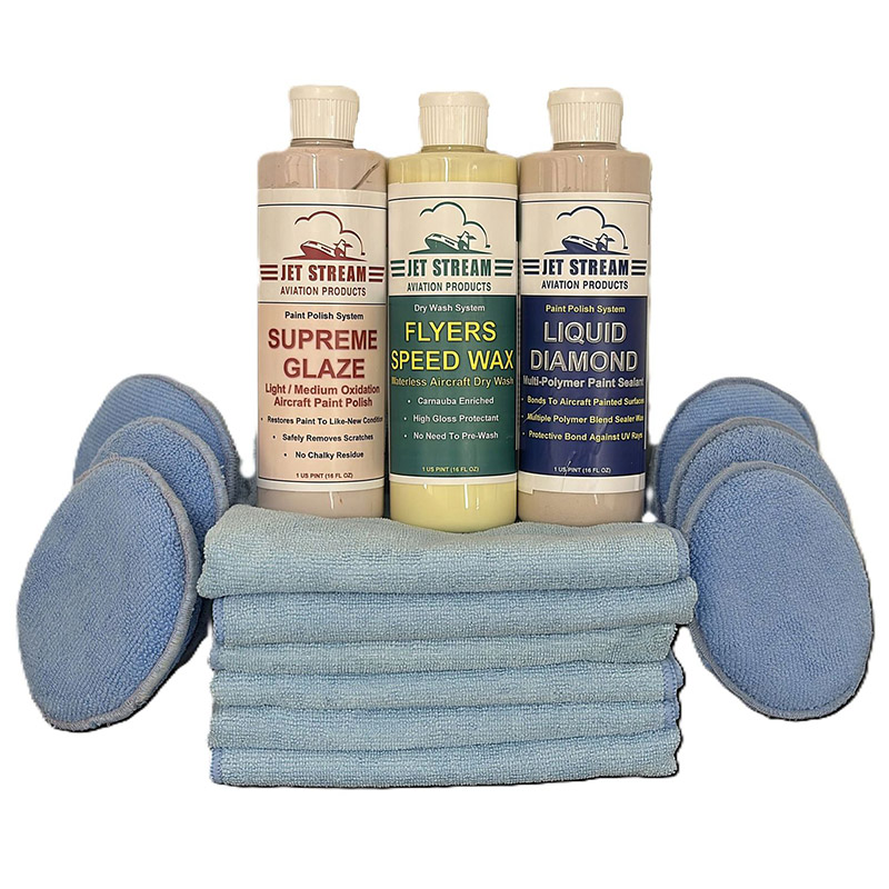 | Everything required to fully polish and seal the paint on a King Air 200 or a Cessna Citation. |