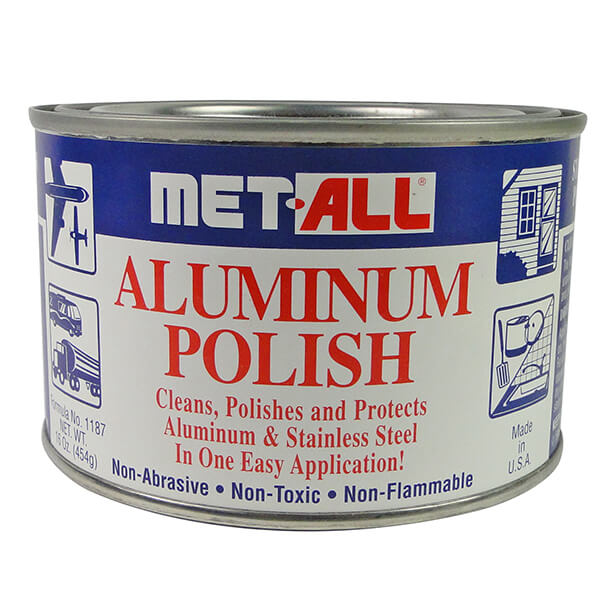 An aluminum polish which removes and prevents pitting. Aluminum shine with mirror-like brilliance. Non-toxic, non-abrasive and non-flammable. Silicone product which resists further corrosion. Meets military specifications. |