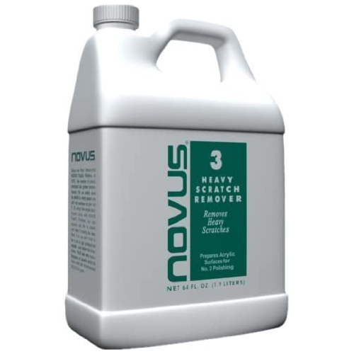 Novus No. 3 removes heavy scratches and abrasions from most acrylic surfaces. This is an aggressive polish and is not intended for use on coated plastics or polycarbonates. Requires both Novus No. 1 and No. 2 polishes for final finishing. |