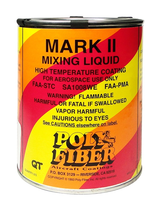 Mixing liquid is a combination of catalyst and thinner to be used only with Mark II for Metal paint. Included in Mark II kits, but also available separately. Shelf life is two years in unopened package. Mark II Mixing Liquid High Temperature Coating for Aerospace Use Only FAA-STC SA1008WE FAA-PMA Important Notice: All mixed paints are special order and are non-returnable. |