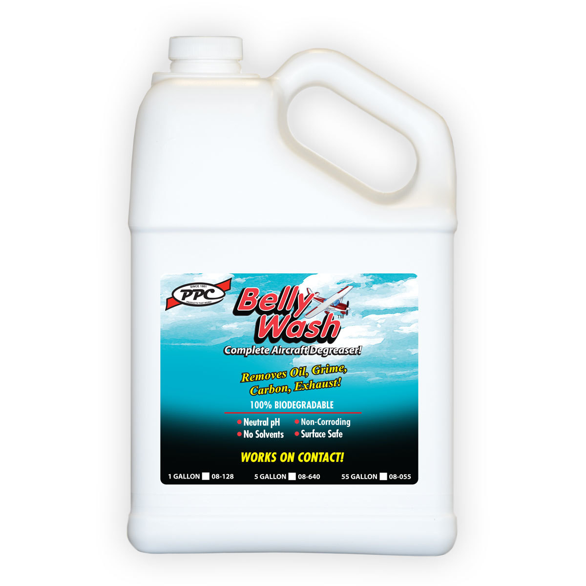 BELLY WASH – Our most popular aircraft cleaning product is now available for general vehicle application in a ready to use concentrate. This product gently yet thoroughly degreases and cleans all surfaces, leaves no streaks or water spots. Harley-Davidson owners swear by it, telling us how well it outperforms S-100 when washing their prized baby. Modern engine compartments come clean quickly and easily when pre-sprayed with PPC’s BELLY WASH. Diesel exhaust and carbon residues from highway driving melt on contact when using our superior yet safe product. And, it’s a great hand cleaner!