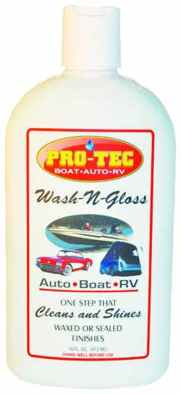 Pro-Tec Wash and Gloss Cleans fiberglass and painted surfaces Leaving a microscopic film of protection Enhances shine and repels water PRO-TEC WASH AND GLOSS can be used in direct sunlight.