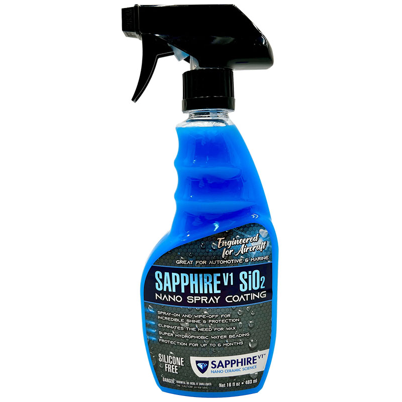 Simply spray on a clean and dry surface, spread, and remove with a folded microfiber cloth; for best performance, paint should be clean and free of contaminants. Sapphire SiO2 ceramic spray coating adds a brilliant mirror-like shine that enhances the depth of color and finish by reducing water spots and contaminant deposits. Can be used in direct sunlight and on all exterior surfaces, including paint, composite, metal, plastic, windscreens, glass, gel coat, trim, and wheels. Safe for fabric aircraft. Use Sapphire SiO2 as a stand-alone product or in conjunction with other protective coatings as a top coat or refresh for ceramic-coated aircraft, vehicles, and watercraft. |