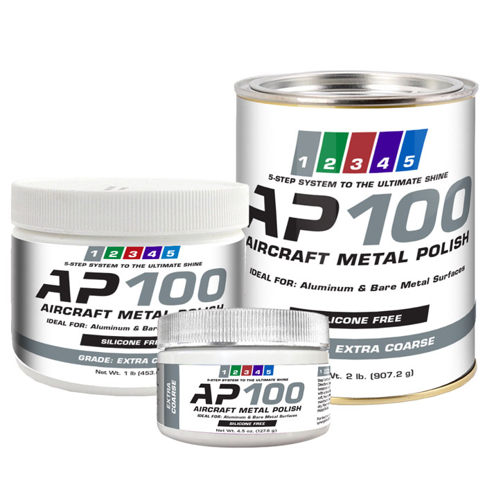 The AP Series is a 5-step system of professional aircraft metal polishing products – ideal for aluminum and bare metal surfaces. These 5 easy steps range in coarseness: Extra Coarse, Coarse, Medium, Fine and Ultra Fine. To achieve the ultimate shine, apply these specially formulated aircraft metal polishing products together in sequence to discover a synergistic effect in both the depth and clarity. The beauty builds from one application to the next, producing luster and long-lasting protection that cannot be beat, validated by gloss meter results. Discover a new class of superior quality aircraft polishing perfection with the AP Series 5-step system! |