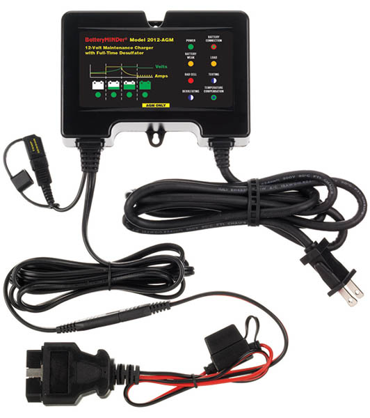 BatteryMINDer® 2012-OBD Keep your battery charged-maintained without lifting the hood! With all newer vehicles being equipped with an On Board Diagnostic port (OBD)*, batteries can be both charged and maintained by BatteryMINDer® brand maintenance charger – desulfators, without needing to make direct contact with the battery posts or even lifting the hood. Cars and trucks that may not be driven for weeks or months will typically cause batteries to run down, unable to start the engine especially in cold weather. They will also have become sulfated** permanently affecting their life and performance. By plugging in any of the four (4) BatteryMINDers equipped with the universally matching OBD plug, batteries will first be fully charge and then maintained at 100% capacity, for weeks or months without ever overcharging. In addition, all models feature full-time automatic desulfation extending new battery life by as much as 4 times as well as improving performance of older batteries. All BatteryMINDer models are covered by a one (1) year Money-Back Guarantee and five (5) year “no hassle” warranty. *(typically located under or adjacent to the steering column) **sulfation is considered the major cause of both shortened life and performance of all lead- acid based batteries including sealed maintenance–free, AGM and Gel types. (Battery Association of America June 1992) |