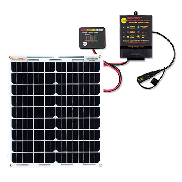 SCC1224-AA-S3: 12V/24V Controller w/20 Watt Solar Panel Battery Charger optimizes all solar panels charge rates. It actively monitors your battery's voltage any time the sun is up. The internal program adjusts its output several times a second based on this reading to quickly and correctly charge your battery. When used as a maintainer, the BatteryMINDer® is guaranteed to maximize your battery’s life and storage capacity. The long-term float (maintenance) stage can add years of service. This solar battery charger/maintainer/desulfator prevents over/under charging. It also safely extends the life and performance of all batteries. Solar battery charger SCC1224-AA-S3 works with 12/24V Odyssey Aviation Batteries. |