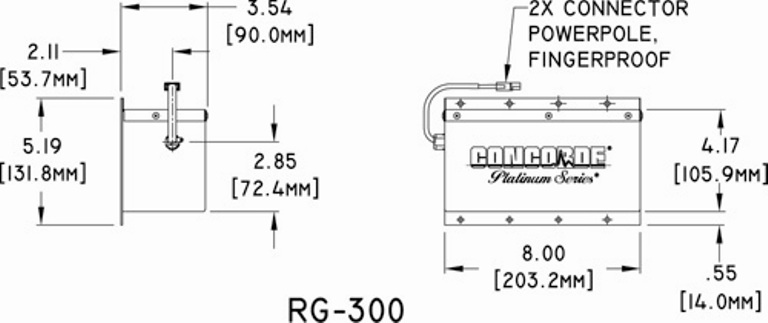 Avionics Battery for lighting, standby, emergency power. Protects and extends the life of other avionics. Concorde Emergency Batteries float directly on the DC buss with no need for a dedicated charger. This results in a high inrush current which extends battery life with fast recovery time from discharge. With the battery floating directly on the buss, transient spikes in the DC power are absorbed. These batteries are self regulating on charge and will take only the current required to maintain it at full charge. Test Temperature @ 23°C ( 74°F) = C1 3.30 Ah Test Temperature @ -18°C ( 0°F) = C1 2.1 AH Test Temperature @ -30°C (-22°F) = C1 1.5 AH Recombinant Gas - The RG® Series are low resistance, valve regulated lead acid (VRLA) batteries.