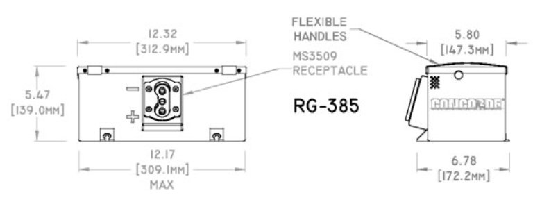 The RG-385 is a Concorde Platinum Series Aircraft Battery. The Platinum Series is comprised of premium hand made AGM Aircraft Batteries with excess power for many applications. Recombinant Gas - The RGŪ Series are low resistance, valve regulated lead acid (VRLA) batteries.