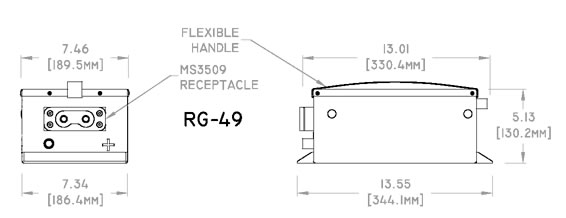 RG-76 is manufactured with a fire resistant powder coated aluminum case and cover and an MS3509 Elcon type connection. Side vent tubes are built into the case. A hold down bar and lifting straps are attached to the cover. |