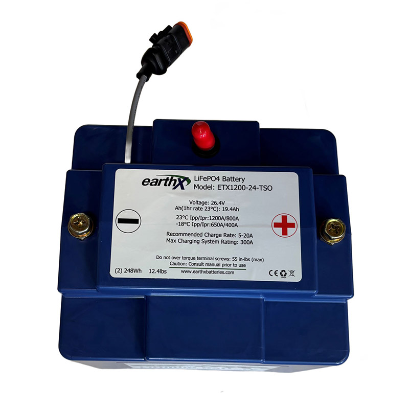 Note: FAA TSO approved 24-volt turbine/turbo prop starter battery. This FAA TSO battery is designed to start TURBINE/TURBO PROP engines with max motor/generator output of 300 amps or less. This battery is a beast in a light package! The ETX1200-24-TSO is a 19.4Ah battery and weighs only 12.4lbs while having insane cranking power! Note: Contact us or EarthX prior to buying if your motor/generator is more than 300 amps to verify the proper batteries needed for your TURBINE application, call 970.674.8884 option 1, or techsupport@earthxbatteries.com. This battery is fully protected by an integrated battery management system (BMS). The BMS protects the cell’s from over discharge, over charge, short circuit, temperature, plus cell balancing to ensure charge levels are equal. Additionally, the ETX-Hundred Series aircraft batteries have redundant electronic circuits and battery fault indication. The fault indicator can be connected into your EFIS or wired to a 24volt LED light on your control panel to alert you to the state of charge and state of health of the battery. (Please see manual for details) In addition to the BMS, this battery has thermal runaway containment and venting ability. This is designed to meet all of the DO-311a and DO-160 requirements for a lithium battery in aircraft. |