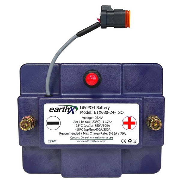 Note: The FAA approved 24V ETX680-24-TSO designed for certified aircraft. FAA Required Statement: “The conditions and test required for TSO approval of this article are minimum performance standards. Those installing this article either on or within a specific type or class of aircraft must determine that the article installation conditions are within the TSO standards. The article may be installed only according to 14 CFR part 43 or the applicable airworthiness requirements.” This battery can be used in an aircraft that has an alternator/generator with 70 amps output or less. This battery has electronic protections (BMS) and built in thermal runaway containment and venting ability built in. The ETX680-24-TSO meets all of the DO-311a and DO-160 requirements for a lithium battery in aircraft. This battery series is fully protected by an integrated battery management system (BMS) that protects the cell’s from over discharge, over charge, short circuit, temperature, plus cell balancing to ensure charge levels are equal. Additionally, ETX-Hundred-Series aircraft batteries have redundant electronic circuits and battery fault indication. This battery also has fault indication that can be programed into your EFIS or wired to an LED on your panel. The fault indicator alerts you to the state of charge and state of health of the battery. (Please see manual for details) |
