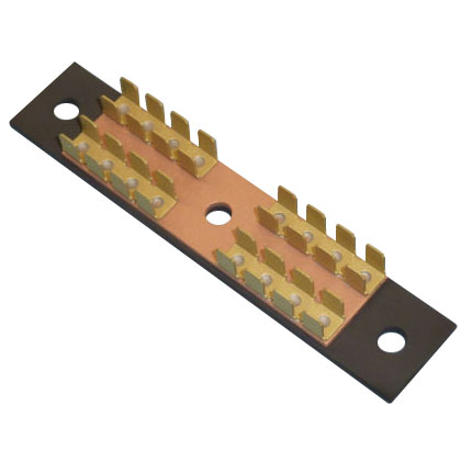 It has brass terminals soldered to a copper bar. It has 1/4 mounting hole for the bar but hardware is not included.