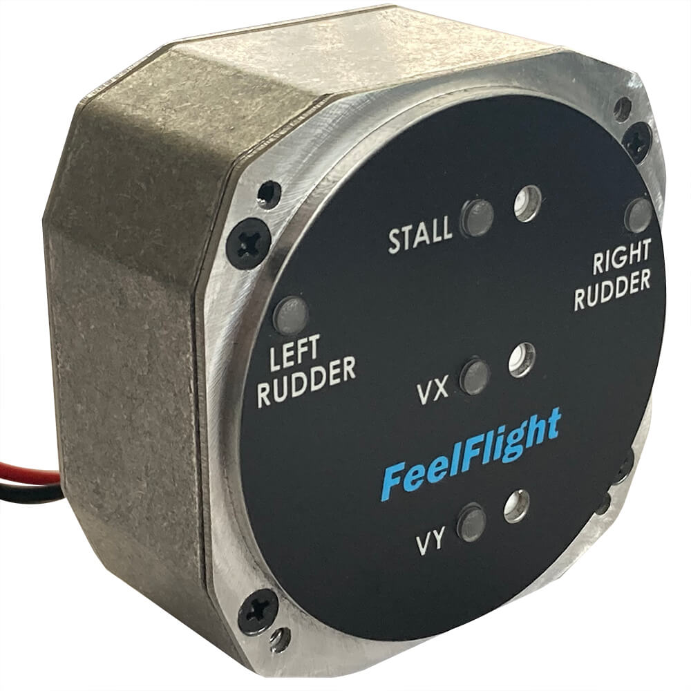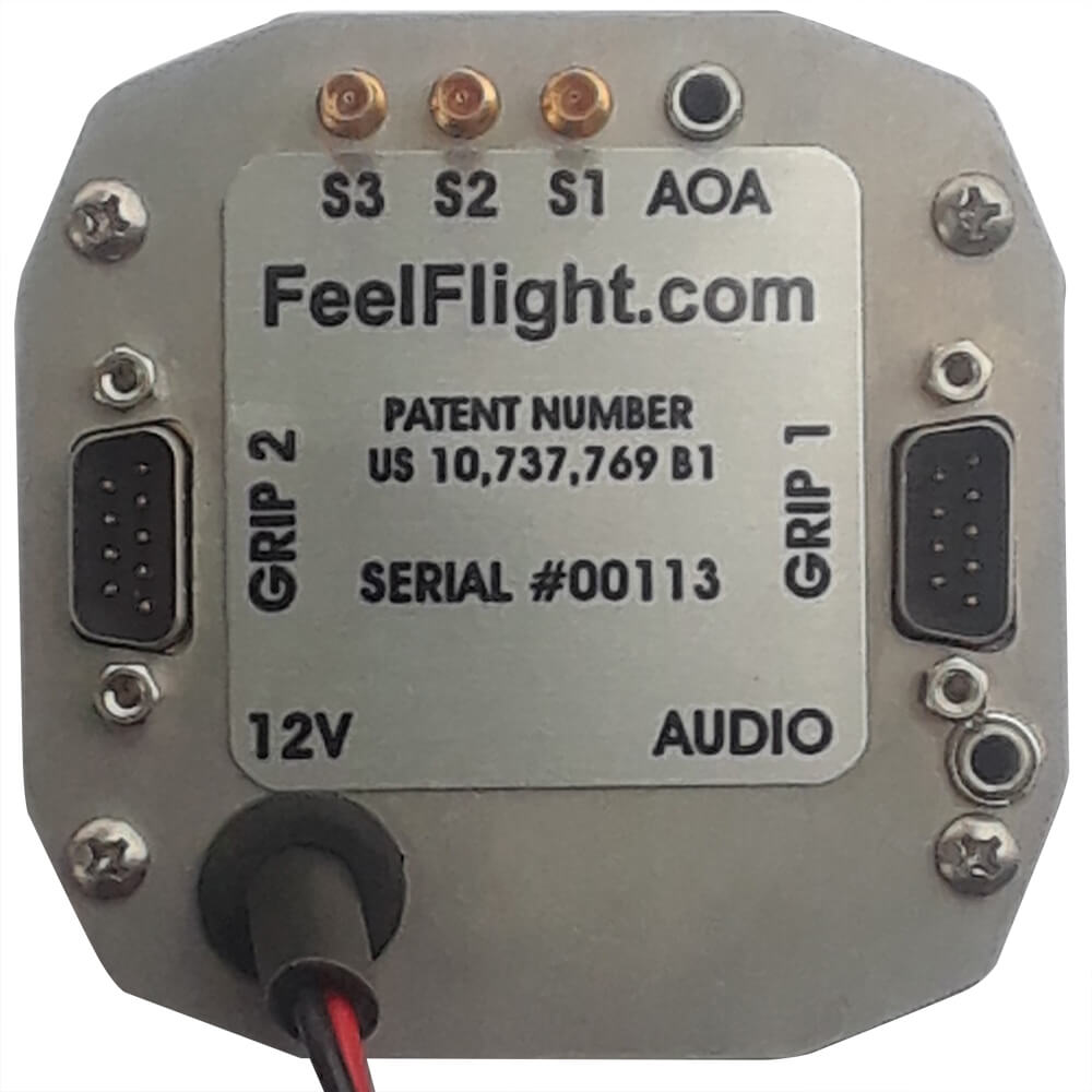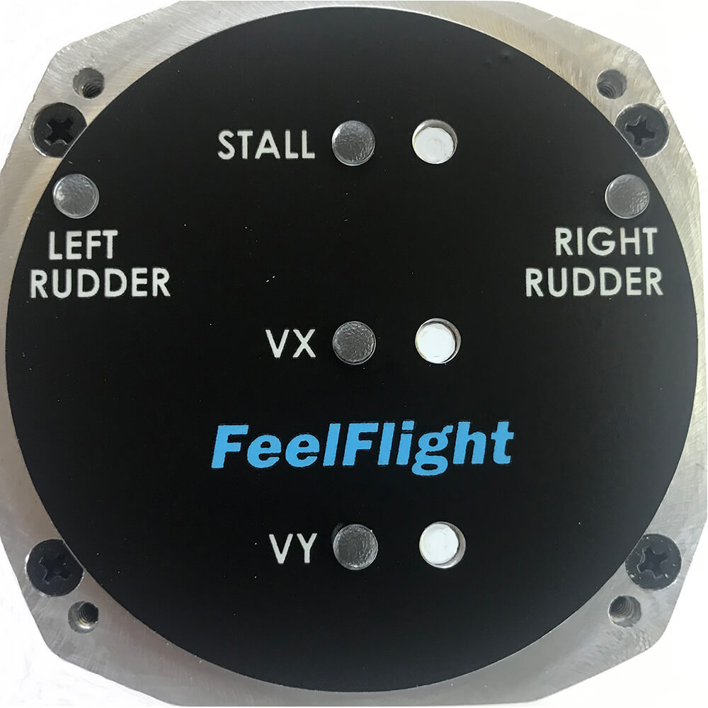 The FeelFlight Grip is a newly developed and patented product inspired by the FAA FlySafe mission to reduce fatal loss of control accidents. The basic component is the unique haptic feedback control grip. This grip signals the pilot “angle of attack” and “inclination” by pulsing the fingers. This is accomplished by electronic solenoids inside the grip. Best rate of climb – Vy, is signaled at the ring finger. Best angle of climb – Vx, is signaled at the middle finger, and STALL is signaled at the index finger. Inadvertent stalls often become fatal because the pilot does not have his turn coordinated. This can result in a spin. There are signaling pins on the left side of the grip and right side of the grip that signal “inclination.” The signal pulses the thumb on the left or the lower index finger on the right. Inclination is the same signal broadcast by the conventional “ball” instrument. Proper pilot maintenance of angle of attack and inclination is crucial for safe flight. Angle of attack sensor The FeelFlight system includes a state-of-the-art magnetic encoder to measure angle of attack. This sensor is small, light and easily mounts in an inspection plate (included) or anywhere on the bottom of the wing. The encoder technology in our sensor gives a highly accurate measurement of AOA with a small light vane. It is also very impervious to weather. Control Module The processing of the input and output happens in a small box that fits in a standard 3 1/8” instrument hole. This box receives the AOA signal and also contains the accelerometer chip that measures and transmits the inclination position. It can power two FeelFlight haptic grips. In addition, the signals in the grip are simultaneously signaled on the face of the control module. LED lamps duplicate the pulsing pattern. This is called “multiple modality” and is very powerful in obtaining the attention of humans. The FeelFlight control module also has an audio signal that starts at Vx and accelerates in tone as stall is approached. The audio signal also shares the same pulsing pattern of the haptic pins and the LED lamps. This is triple modality and is considered the maximum sensory technique for obtaining the attention of any equipment operator. It has proven very effective in the FeelFlight system. |