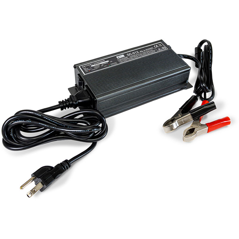 The Gill GC-012 VDC Charger is lightweight and is built in a high strength aluminum case. This is fully automatic and provides a 3 stage charger can be left on the battery for long periods. The LED's light shows the status of when the power is on, charging, and when the battery is charging. The circuit protection is reversed polarity and short circuit protected (fused). The power cord length is 6-feet and a 4-foot charge cord with alligator clips included. The Charge control is modified to a constant current charge and a constant finishing voltage, then to a float standby.