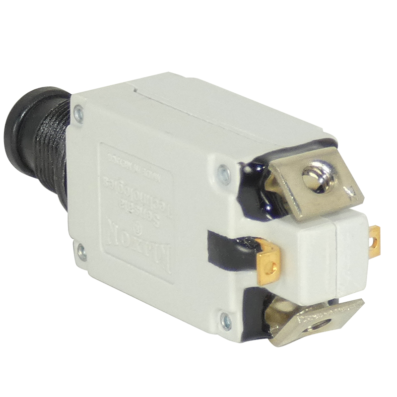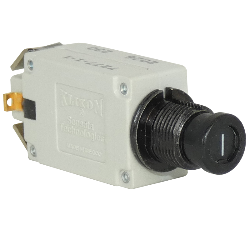 Originally developed as an alternative to slow blow fuses, the trip free 7277 is used extensively as primary electrical circuit protection on general aviation aircraft. The wider calibration limits of the 7277 has also resulted in applications including protection for data processing and telecommunications equipment, computers, flight simulators, construction, material handling and other industrial,electronic equipment. For use on trainer / simulator applications where all breakers are operated on low ampere control current, different ampere rating inserts (amp ratings on top of push button) can be ordered.