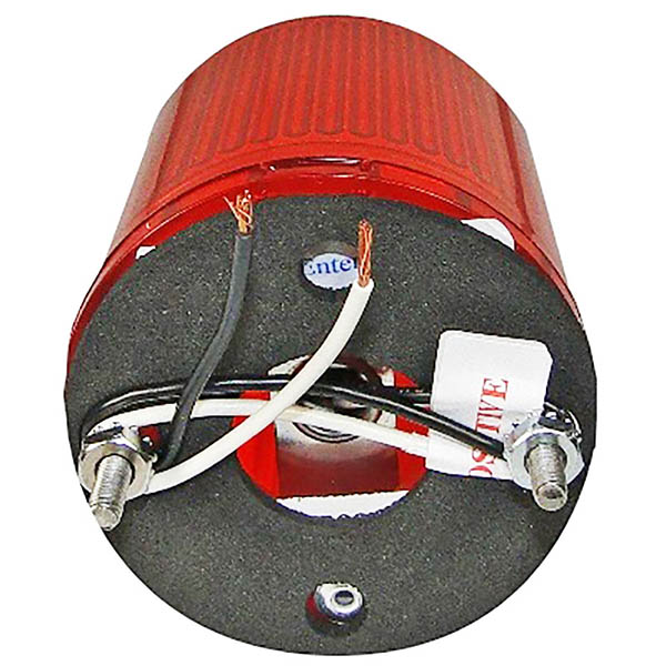 LED based self-contained, High Impact, red, Polycarbonate Optical Lens. Lighter, Brighter, Cooler Longer Life (up-to 50,000 hrs.) and draws less than 1 amp. (.13 amps) @ 12vdc. Weighing in at 3.5oz. it stands 3" high and 2.5" in diameter. |