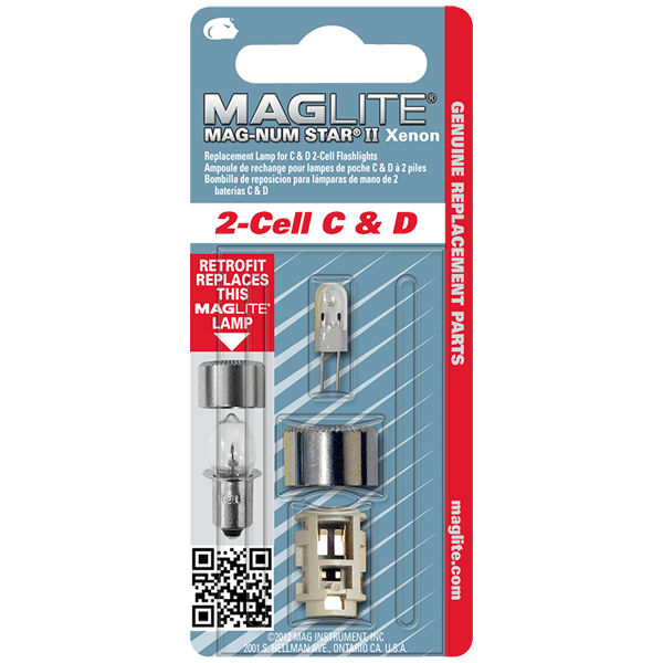 Replacement Lamp for C & D 2-Cell Maglite Flashlights. The Maglite LMXA201 MAG-NUM STAR II Replacement Lamp is a xenon bulb designed to deliver a bright and far-reaching light beam while maintaining strong battery life. |