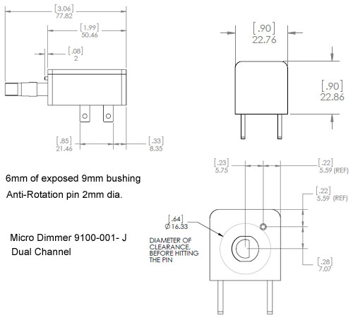Microdim Dual Channel Dimmer - Dual Channel Unit 5 to 35 VDC, 0-7.5 A per channel, Control over 210 Watts In a .9" Inch square by 1.9” Package. Complete compact, light weight, powerful, solid state PWM dimmer. Sized for those tight panels with smaller dimensions and depth of 1.9". Bushing Selection: Please select the 6mm bushing for panel thickness of 2.2mm/.086" or less, and 11mm bushing for greater panel thicknesses. Lighting Selection: The Incandescent version will also control electroluminescence lighting. The LED/Incandescent version will control LED on one channel, and incandescent on the other. |