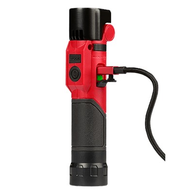 Our Redlithium USB Pivoting Flashlight offers high output in any task and any position. It's powered by Redlithium USB, giving you high output light for any task from any position. The flashlight features spot and flood beam modes allowing you to change it from a high-powered flashlight to a versatile task light with the press of a button. With 500 lumens of Trueview High Definition Output and a 155-meter (377 feet) spot beam distance, it gives you the ability to search, trace, or inspect better from farther away. In flood mode, the LED flashlight's 110° pivoting light head and magnet base provides you with hands-free task light, while directing the light exactly where they need it.