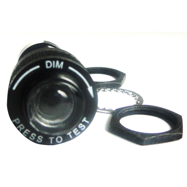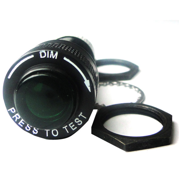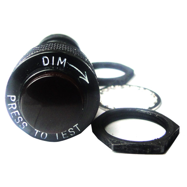 Miniature press-to-test indicator with built-in bulb testing device. Adjustable dimmer. Uses #330 (12V) or #327 (24V) bulb. Bulbs NOT included, order separately. Part numbers for replacement bulbs are 11-04016 (GE-330) and 11-04015 (GE-327). See "Accessories" tab to purchase. |