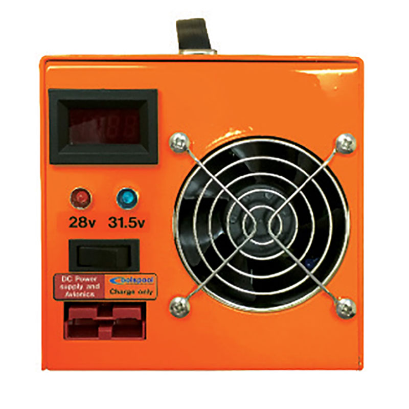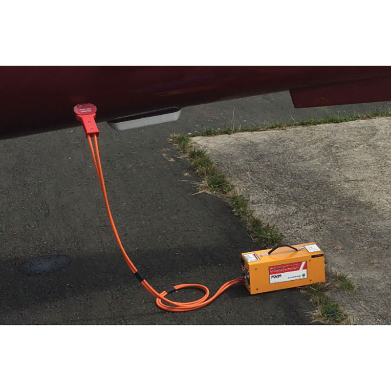 Developed in collaboration with Powervamp, the PS50 is a solid state hand-portable combined charger/power supply delivering a maximum of 50A at pre-set voltages of 28V DC for avionics use or 31.5V DC for the rapid re-charging of Powervamp’s unique 28V DC Coolspool portable aircraft start units. Voltage selection is by front-mounted switch.