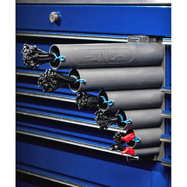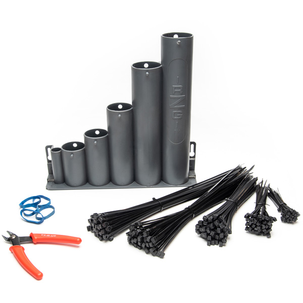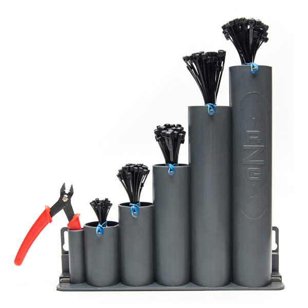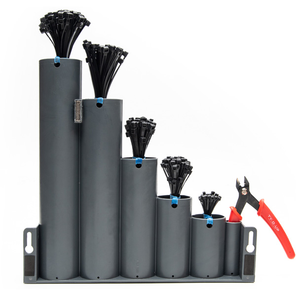 Ready-Zip- Go Zip Tie Holder for all your projects and hobbies No more fumbling or sorting through bags, drawers or tubes for the right zip tie. The convenient system makes your workplace orderly and uncluttered. The magnetic tie holder is equipped with 250 or 500 black zip ties and a flush cutter. |