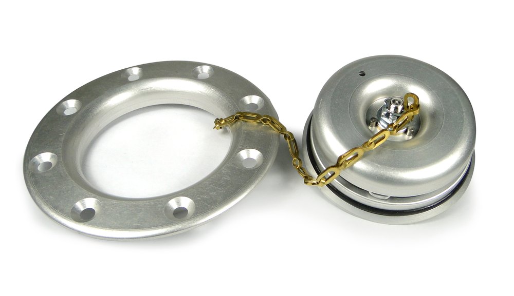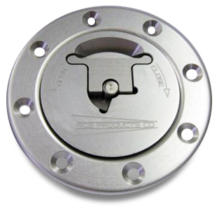 The unvented flush fuel cap operates with a lift and turn lever. This cap has a 3" opening for easy refueling. Cap & adapter ring are anodized "clear" for corrosion resistance. Cap is fastened to adapter ring with safety chain. Made in USA |