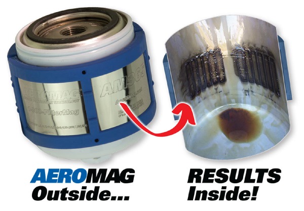 AeroMag® Maximum Engine Protection…In a Snap! If lubrication were perfect, nothing would ever wear out. Note: Sold as a single unit, however to gain maximum results purchase as a set of two (one on each side as shown in images). Within the tight clearances of today’s aircraft engines, normal wear generates tiny steel particles that are carried away in your oil. These particles are so small they will pass right through an normal oil filter. When the oil circulates back into the engine, these same particles are carried into every lubricated space where they can cause three body abrasive wear. This particle-laden oil will continue to lubricate, but it will also cause an exponential increase in wear while it circulates. The longer the oil is used, the greater the wear, the shorter the life, and the lower the reliability. AeroMag® extracts normal, wear-causing steel particles from your oil with its powerful, focused, magnetic field technology. These particles are permanently trapped on the inside wall of the filter and are thrown away when the filter is changed. Slide the AeroMag® off the old filter, snap it onto a new one and it goes right back to work protecting your engine. Snap On • Slide Off • Reuse Little Known Lubrication Facts:
