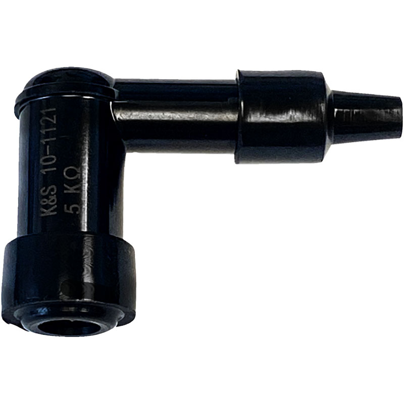 K&S Resistor Caps 90° Elbow type, 14mm adaptable thread size, 5KΩ resistance, terminal nut, allowable wire diameter 7mm-8mm,waterproof caps. NGK Reference: LB05E / 8031, LB05EP / 8020 |