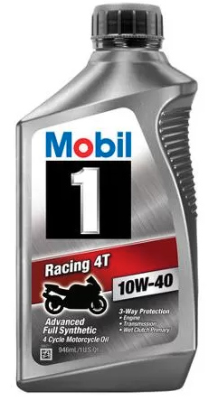 The unique, synthetic structure of the Mobil 1™ motorcycle oil formulations offers advantages beyond conventional motorcycle oils of similar viscosities. Mobil 1 Racing 4T has been fully tested, both on laboratory dynamometers and in the field, to help provide optimum horsepower and acceleration. This full synthetic motorcycle oil helps provide excellent performance in motorcycle engines that are either: