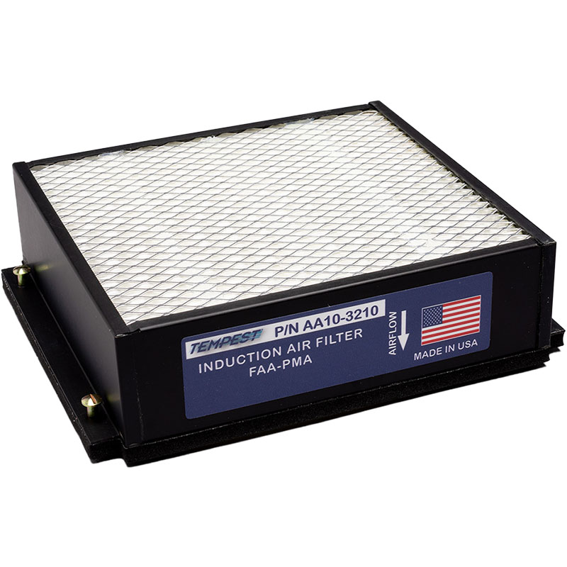 Tempest AeroGuard™ induction air filters are approved on a variety of Cessna, Piper, Beechcraft and Mooney aircraft. They are manufactured using a black anodized aluminum housing and screen to prevent corrosion and fragmented media from being ingested. Designed to keep your induction system clean in the dirtiest environments, the synthetic media offers maximum airflow while still filtering out 99% of contaminants larger than 5 microns. These induction air filters will provide you with the high quality and durability you''ve come to expect with Tempest products. |