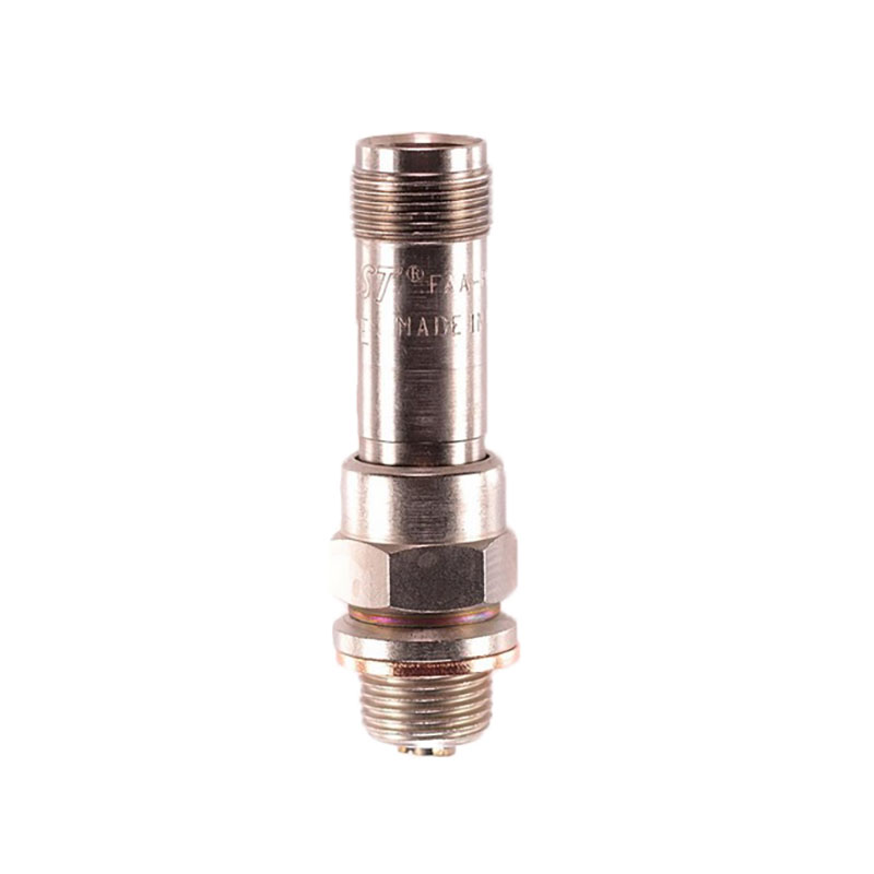 MASSIVE ELECTRODE SPARK PLUG Aviation Spark Plug With the most automated manufacturing processes and the most innovative spark plug in the aviation industry. Made in USA. High Conductivity Copper Core Center Electrode copper, co-extruded inside a nickel alloy sleeve ensures outstanding heat and electrical conductivity while the nickel sleeve offers high resistance to corrosive combustion gases. High Alumina Ceramic Insulator high mechanical strength, superior dielectric properties, proprietary protective glaze, provides high performance to conquer severe operational conditions. "Clean Collar" massive electrode "V" tip focuses heat to reduce fouling and enhance heat range control. Proprietary Glass Center Seal 21st century 'fired in' resistor replaces the multipart screw, spring, carbon pile stack up used in competitive plugs and known to suffer from resistance value instability that can cause misfires, wasted fuel, engine roughness. Nickel Finish environmentally preferable electrolytic nickel provides outstanding durable finish, superior corrosion protection, and extreme wear resistance. Nickel Ground Electrodes aviation grade nickel electrode design focuses on minimizing sparking voltage requirements while maintaining specification gaps to ensure large, stable 'flame kernels' for on-time ignition and complete combustion. Vacuum Infused Center Electrode proprietary, vacuum infusion process seals electrode/insulator gap providing stable heat range and superior center electrode cooling (heat flow to the insulator). Hot-Lock Assembly intense pressure and heat create positive, zero-leakage, shrunk in seal between insulator and shell to contain the hot, high pressure combustion cycle gases. Harness Wire Contact smooth, uninterrupted, oxide treated spring contact surface offers enhanced corrosion resistance, is chemically bonded to the fired-in resistor providing the ultimate harness/spark plug termination integrity and energy transfer. |