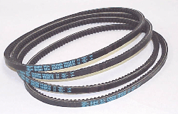 Reduction Drive Belts are available in: single band (Super HC®) or quad band (Super HC®PowerBand®) PowerBand® belts were developed by Gates for drives subjected to pulsating loads, shock loads or extreme vibrations where single belts could flip over on the pulleys. A high-strength tie band permanently joins two or more belts to provide lateral rigidity. This keeps the belts running in a straight line in the pulley grooves. PowerBand constructions is offered with Gates Predator® Hi-Power® II, Super HC® and Super HC Molded Notch Belts Super HC® Molded Notch V-Belts / Cross Sections: 3VX Super HC® Molded Notch belts are made with Gates exclusive EPDM construction for higher heat resistance and smoother running. They have specially designed notches and lateral rigidity to support the cord with precision-machined sidewalls for better length control, product uniformity and consistency. Gates molded notched V-belts, also referred to as cog belts, can save you up to 3% in energy savings compared to wrapped belts due to increased flexibility and reduced bending stress. Both Super HC® and Super HC® molded notch V-belts are part of the Gates V80 matching system. Both lines resist the effects of oil, heat, ozone, sunlight, weather and aging. They meet RMA standards for static conductivity and are available in both single strand and PowerBand® “joined” belt configurations. |
