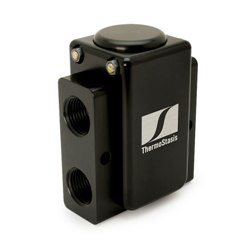 Cold oil: the internal oil bypass is open, allowing incoming oil to bypass the oil cooler and returned directly to the engine significantly reducing warmup time. Stage 2 As the oil reaches the desired operating temperature the internal bypass partially closes, automatically regulating and controlling flow through both the internal bypass AND the external oil cooler so that desired operating temperature is maintained. Stage 3 Hot oil: the internal bypass closes completely, directing 98% of the total oil flow through the oil cooler. Under these conditions, the all temperature is limited by the cooling capacity of the external oil cooler. The simple answer is no installing an oil temperature thermostat may slightly increase your oil pressure when it is most needed during cold starts. It offers a shorter, less restrictive flow path to the lubricating oil while the engine is cold. The cold oil bypasses the oil cooler and eliminating the small pressure drop that would otherwise occur. Can it block the flow of oil? No, it cannot block the flow of oil in any circumstances whether operating normally or in a failed condition, it is impossible for the unit to block the flow of oil or the oil circuit. What is the warranty period? The warranty period of the oil thermostat is two years. How big is the unit? The unit is really small being 55mm high, 55mm long (without the hose barbs) and just 40mm deep, the unit can be bolted to the firewall or a bracket with the two 3/16" mounting holes. Download the ThermoStasis Installation Instructions (PDF) |