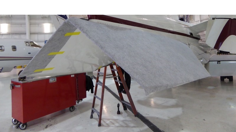 ALLProtect is a padded, non-slip protective covering for use on interior and exterior surfaces of all types of aircraft during building, maintenance and repairs. Nonwoven with an adhesive PE film and non-slip surface. The backing is a PE film that creates a liquid barrier against spills, and it has a strong adhesive composite that leaves absolutely no residue on removal.