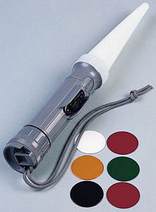 This lighted traffic directing wand comes with 6 colored lense discs that change the color glow of the white tapered top. |