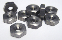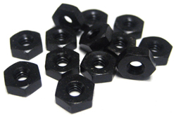 Although the picture doesnt show it, these brass nuts have a black coating.