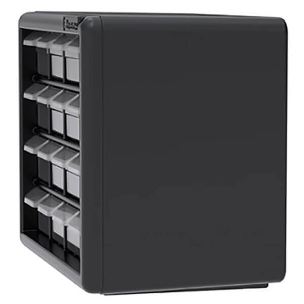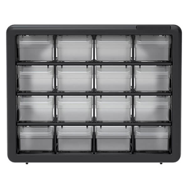 Organize and protect your office, hardware and craft supplies with Plastic Storage Cabinets from Akro-Mils. Clear drawers offer easy content identification and are dividable to expand storage options. Finger-grip drawer pulls provide easy access and rear stop tabs prevent contents from spilling. Cabinets stack securely and can also be wall-mounted with keyhole slots. A variety of drawer configurations provide versatile storage solutions. |