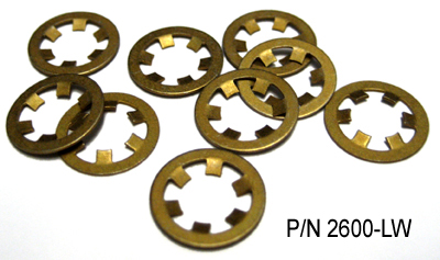 Retaining washers are required for studs of -5 length or greater. Use split washer 2600- SW2 where it is desirable to have the stud fall away for minimum internal projection. Use internal tooth washer 2600-LW where it is desirable to retain the stud assembly rigidly. |