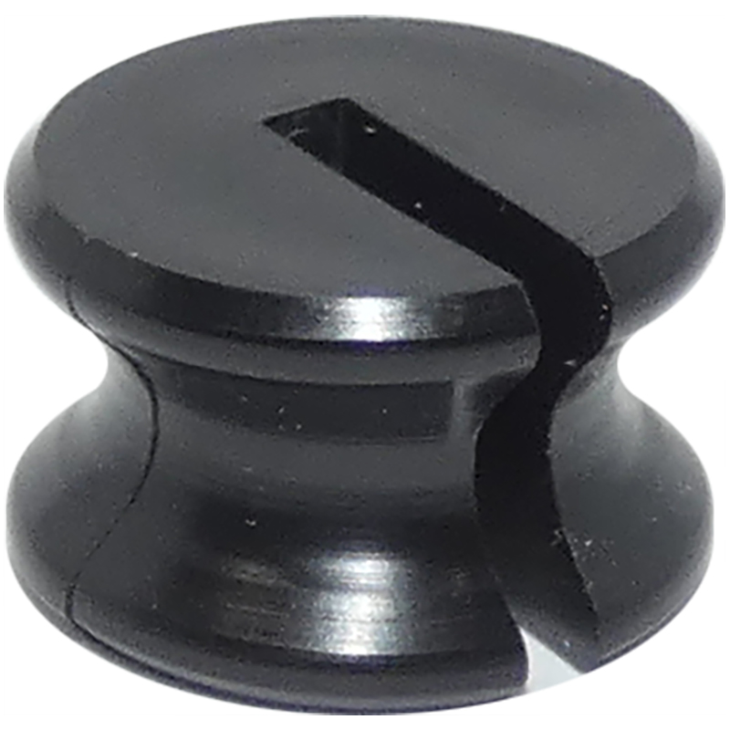 Thimble Bushings are a precision molded nylon insert that helps elminate thimble elongation under load to maintain correct cable length and tension. They are used by many ultralight and hang glider manufacturers. They can be used with 1/16", 3/32" or 1/8" cable. The slot depth corresponds to the hole edge distance in tang (measurement from edge of hole to edge of tang). Choose the size that most closely matches tang thickness and hole edge distance. Thimble is opened up to insert bushing and then closed. Color is black. *Blank Thimble Bushings allow builders to cut their own custom slot. |