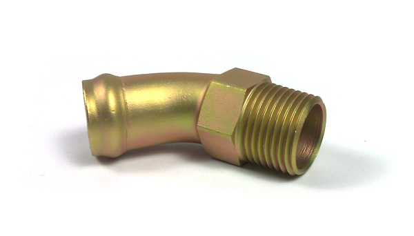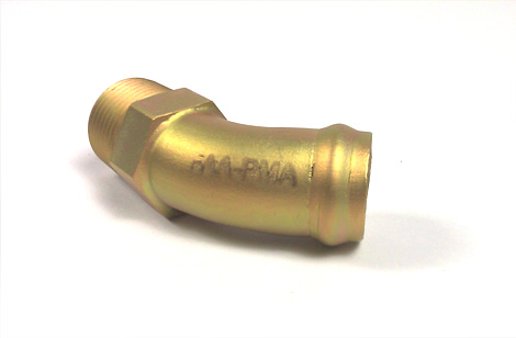 A 3/8" 45° fitting used for either inlet or outlet ports with installations having 5/8" hoses. |