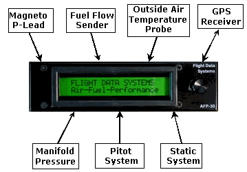 The Flight Data Systems AFP-30 computer performs the functions of three devices for a very low price. It is designed for the experimental aircraft owner who wants instantaneous flight information previously reserved only for transports and private jets. The Air Data Computer function features complete Winds Aloft information, Airspeed information including True Airspeed and Mach number, Altitude information such as Density Altitude and Vertical speed, and both Total and Saturated Air Temperature . The Fuel Computer function is a full featured system complete with GPS communication enabling it to display Miles Per Gallon, Range and Arrival Fuel along with fuel flow and the other standard fuel computer data. The Performance Computer function calculates, instantaneously, Percent Horsepower based on the engine manufacturer’s power chart. It also provides backup Tachometer and Manifold Pressure indications. User customizable display page(s) shows any four data items. Display units (MPH, Knots, Celsius, Fahrenheit, Gallons, Liters, Inches, Millibars) are also user selectable. The AFP-30 is compatible with most handheld and panel mount GPS units. Data is continuously sent to panel mounted GPS units filling in the GPS’s data pages and increasing panel mount GPS capability. The AFP-30 is packaged in a standard radio rack mountable chassis. It features a sunlight readable, backlit, extreme operating temperature display with simple single knob operation. All systems include Floscan certified Fuel Flow sensor(s), Temperature sensor, wiring and connectors. Partial systems are available at a reduced price for customers not requiring all functions or sensors. Please call for specific information. |